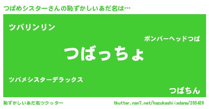 | 意味不明あだ名 | 『つばめシスターフォーエバー』 |