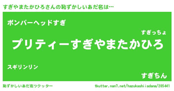 | ヘコむあだ名 | 『すぎもー』『すぎやまたかひろ(小並感)』 |