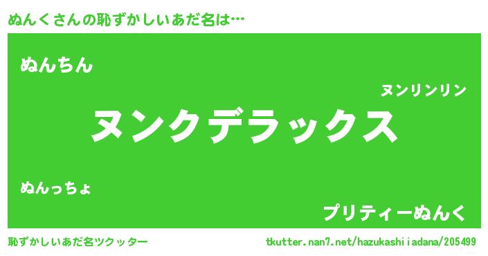 | ヘコむあだ名 | 『ぬんく(笑)』『ぬんにー』『ぬんを』 |