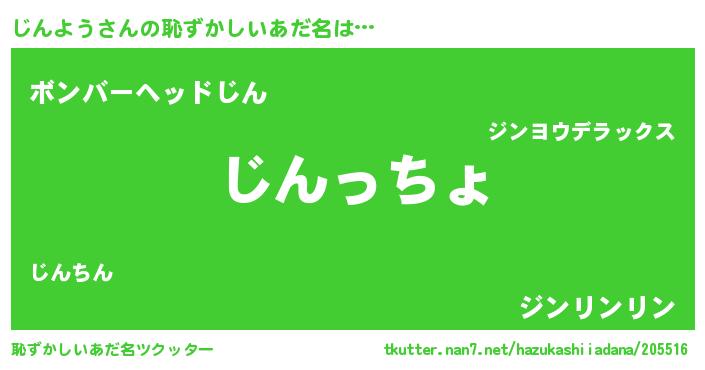 | 男性向けラノベタイトル風あだ名 | 『じんよう~年齢イコール彼女いない歴の魔法使い~』 |