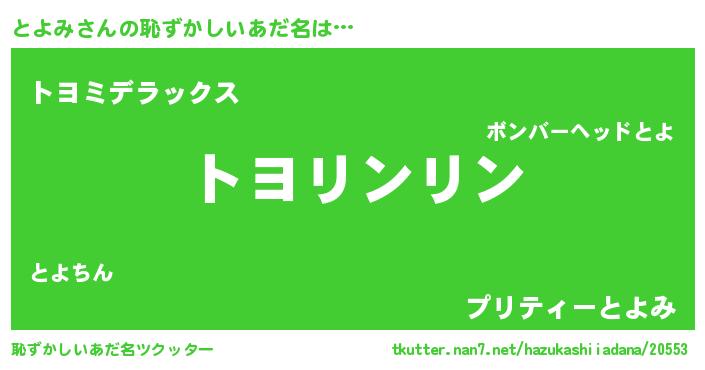 | ヘコむあだ名 | 『とよぷりん』『とよにー』『豆乳』 |