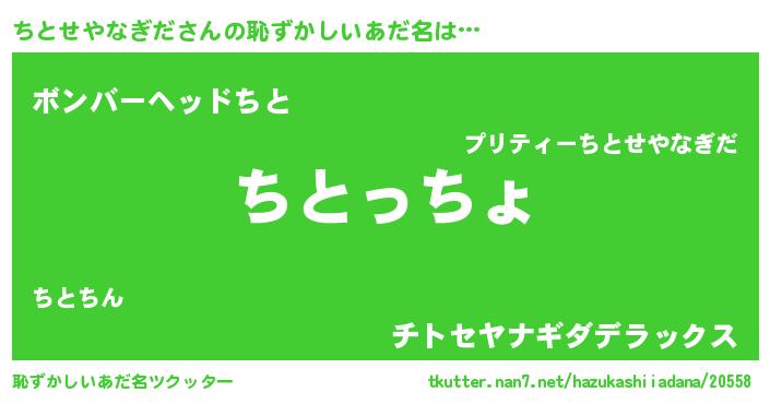 | 意味不明あだ名 | 『住所不定無職ちとせやなぎだ(98歳)』 |