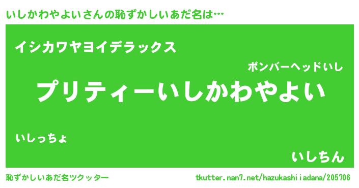| 男性向けラノベタイトル風あだ名 | 『いしかわやよいの憂鬱』 |