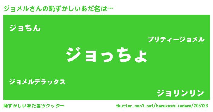 | 意味不明あだ名 | 『ジョメルフォーエバー』『自称ジョメル』 |