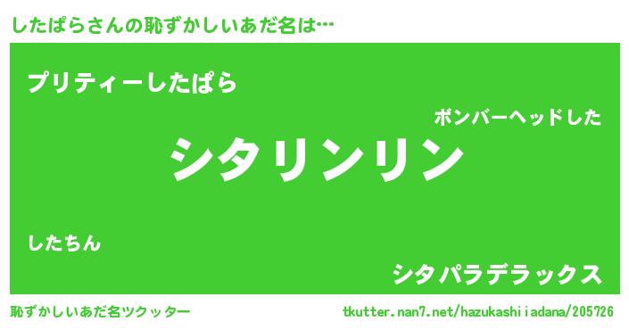 | 意味不明あだ名 | 『とにかく怪しいしたぱら』 |