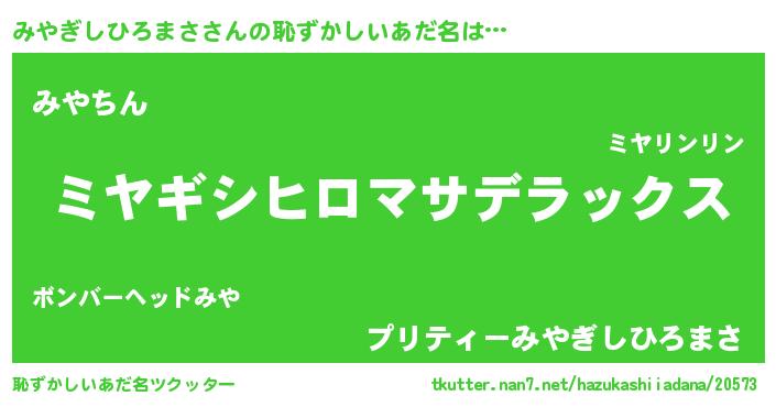 | ヘコむあだ名 | 『みやぎしひろまさ(笑)』『みやふぇ~』 |