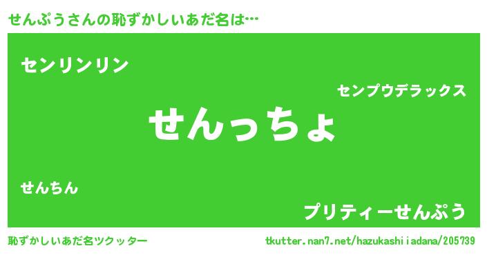 | ヘコむあだ名 | 『つくし』『せんぷりん』 |