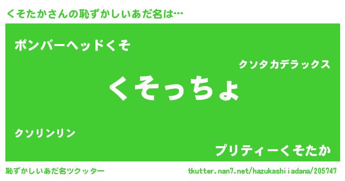 | ファンタジー風あだ名 | 『エターナルクソタカー』『クインクット』 |