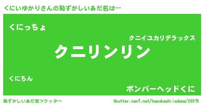 | 男性向けラノベタイトル風あだ名 | 『くにいゆかりに滅ぼされるだけの簡単なお仕事です』 |