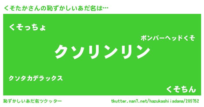 | 女子向けラノベタイトル風あだ名 | 『くそたかは平凡を望む』 |