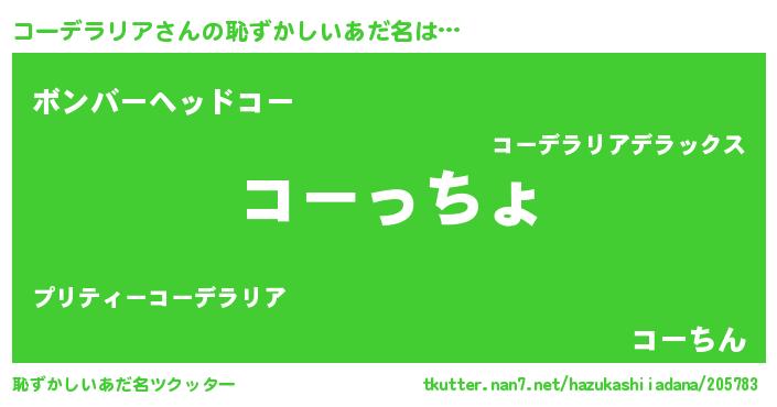 | 意味不明あだ名 | 『コーデラリアフォーエバー』 |