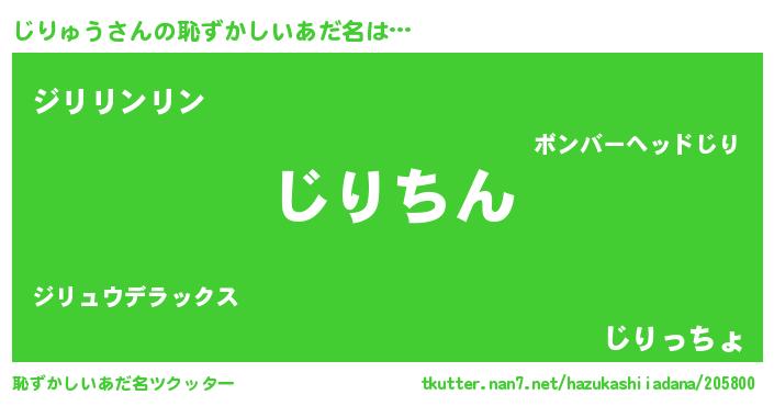 | 意味不明あだ名 | 『永久保存じりゅう』『自称じりゅう』 |