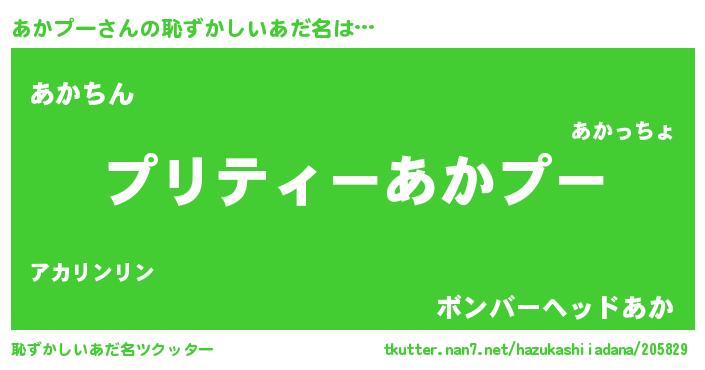 | ヘコむあだ名 | 『あかにゅー』『あかプー(小並感)』 |