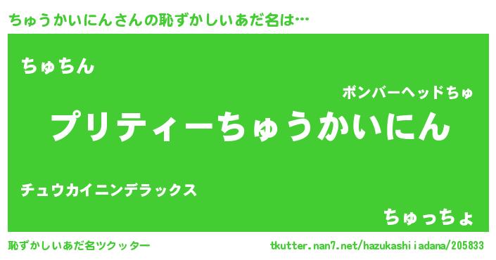 | ヘコむあだ名 | 『ちゅにー』『ちゅうかいにん(震え声)』 |