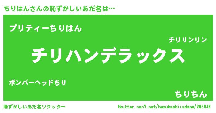 | 料理風あだ名 | 『ちりはんごはん』 |