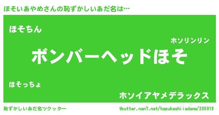 | 可愛いあだ名 | 『ほそちゅっちゅ』『ほそいあやめママ』 |