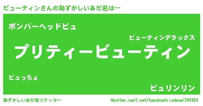| 男性向けラノベタイトル風あだ名 | 『ビューティンの憂鬱』 |