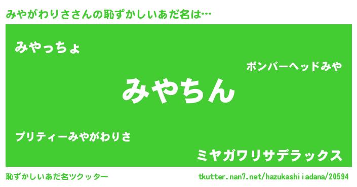 | 男性向けラノベタイトル風あだ名 | 『転生したらみやがわりさだった件』 |