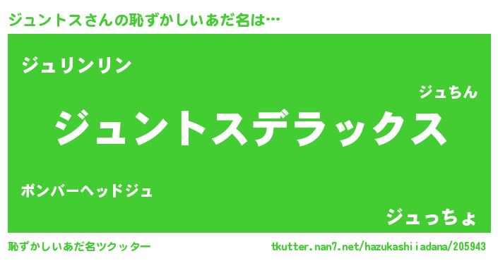 | 意味不明あだ名 | 『自称ジュントス』『永久保存ジュントス』 |