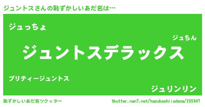 | 意味不明あだ名 | 『自称ジュントス』『永久保存ジュントス』 |
