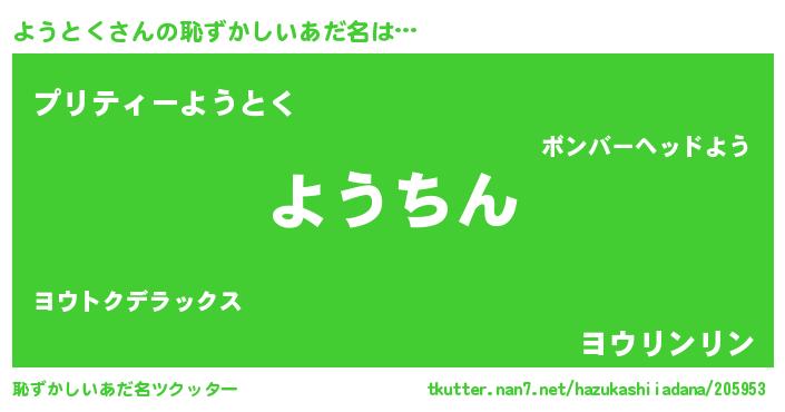 | 意味不明あだ名 | 『永久保存ようとく』『ペロリンようとく』 |