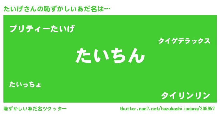 | ヘコむあだ名 | 『たいげ(震え声)』『たいもー』 |