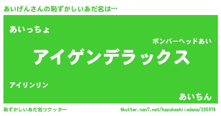 | 意味不明あだ名 | 『自称あいげん』『あいげんフォーエバー』 |