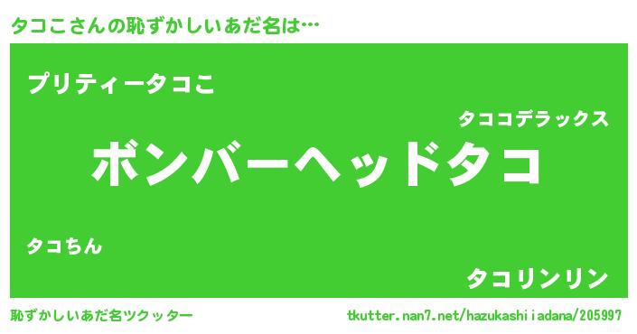 | ヒーロー風カッコイイあだ名 | 『慈愛の使者タコこ』『スーパータココ』 |