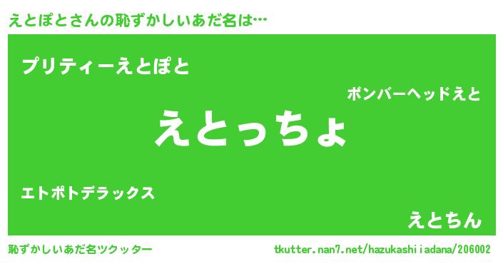 | 意味不明あだ名 | 『えとぽとフォーエバー』 |