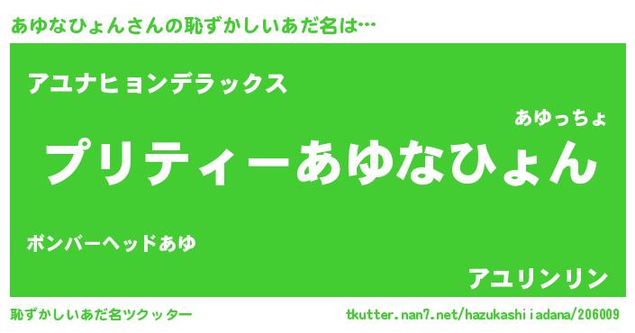 | 欧米人風あだ名 | 『マイケルあゆなひょん』 |