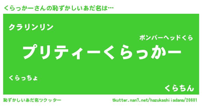| 胡散臭い通販商品みたいなあだ名 | 『億万長者になれる霊験あらたかなお札…その名も「くらっかー」』 |