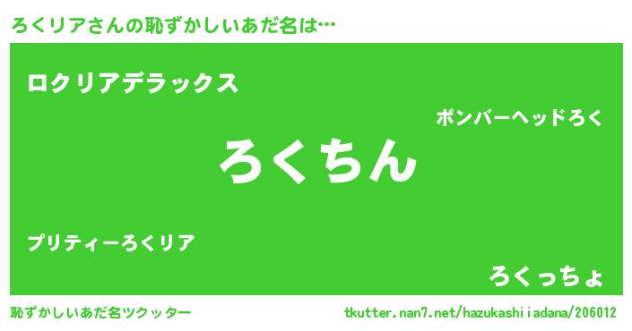 | 意味不明あだ名 | 『永久保存ろくリア』『自称ろくリア』 |