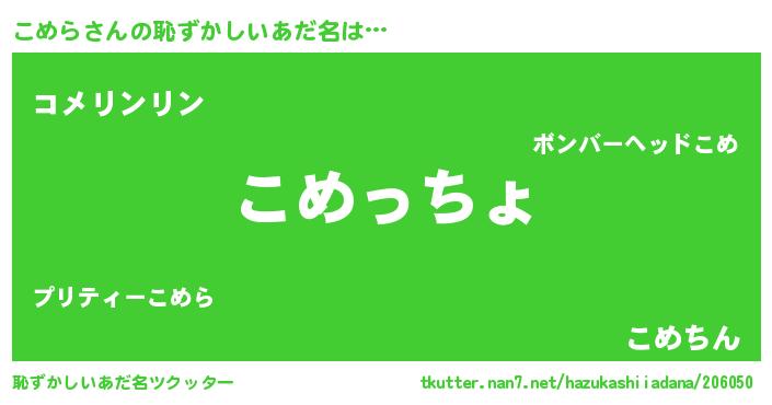 | ヒーロー風カッコイイあだ名 | 『ウルトラこめらマン』『炎刃騎士コメ』 |