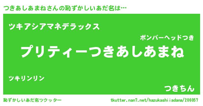 | 欧米人風あだ名 | 『アンジェラ・つきあしあまね』 |