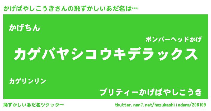 | 意味不明あだ名 | 『自称かげばやしこうき』 |