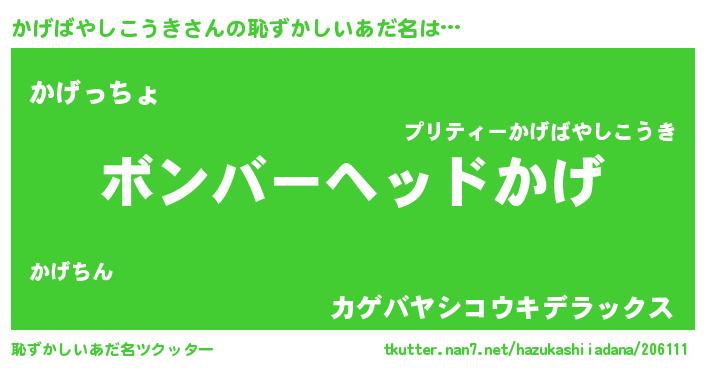 | 男性向けラノベタイトル風あだ名 | 『おまえをオタクにしてやるから、俺をかげばやしこうきにしてくれ! 』 |