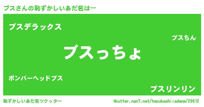| 男性向けラノベタイトル風あだ名 | 『この素晴らしい世界にブスを!』 |