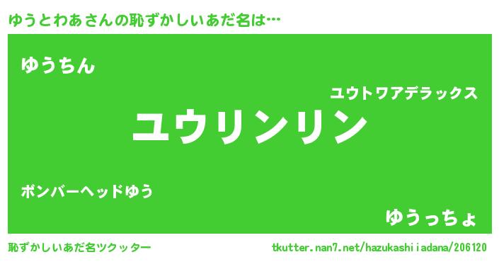 | ヘコむあだ名 | 『ゆうお』『ゆうとわあ(笑)』 |