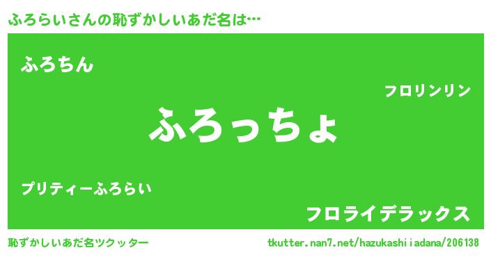 | 意味不明あだ名 | 『ふろらいフォーエバー』『自称ふろらい』 |
