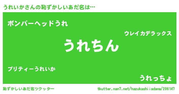 | ヘコむあだ名 | 『うれいか(笑)』『レバニラ』 |