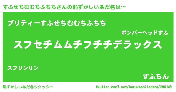 | 意味不明あだ名 | 『自称すふせちむむちふちち』 |