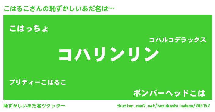 | 意味不明あだ名 | 『とにかく怪しいこはるこ』 |