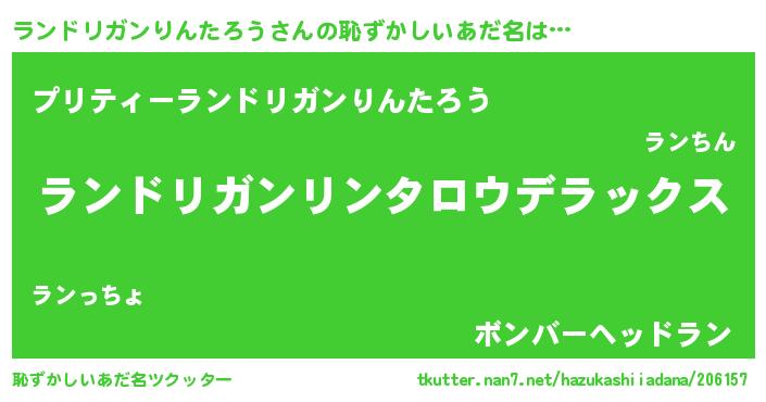 | 男性向けラノベタイトル風あだ名 | 『Re:ランドリガンりんたろうから始める異世界生活』 |
