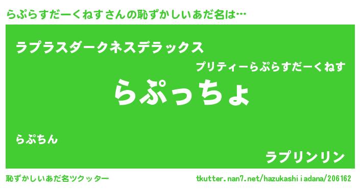 | 意味不明あだ名 | 『らぷらすだーくねすフォーエバー』 |