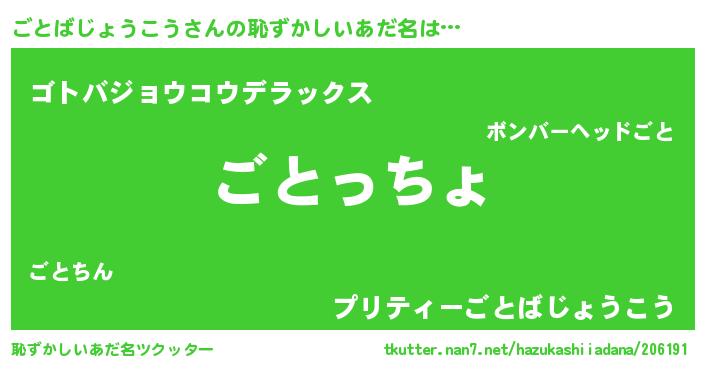 | 男性向けラノベタイトル風あだ名 | 『転生したらごとばじょうこうだった件』 |