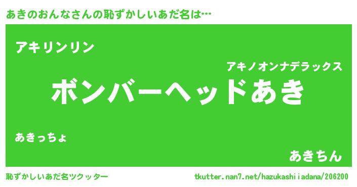 | ポケモン風あだ名 | 『アックウザ』『ヒアキノオンナ』 |