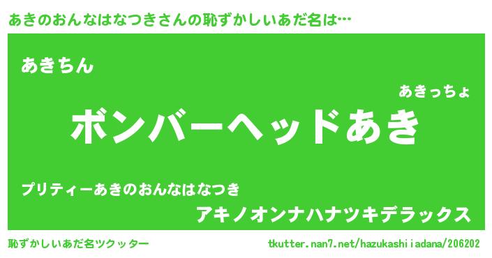 | ヘコむあだ名 | 『あきのおんなはなつき(爆)』『つくし』 |