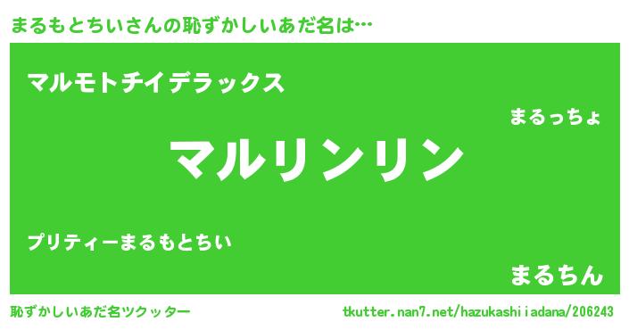 | 男性向けラノベタイトル風あだ名 | 『まるもとちいの嫁は女の子じゃないと思った?』 |