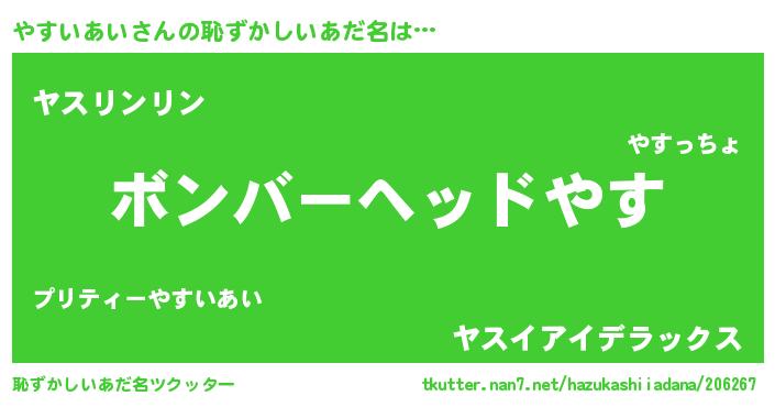 | ヘコむあだ名 | 『やすぷりん』『酢こんぶ』 |