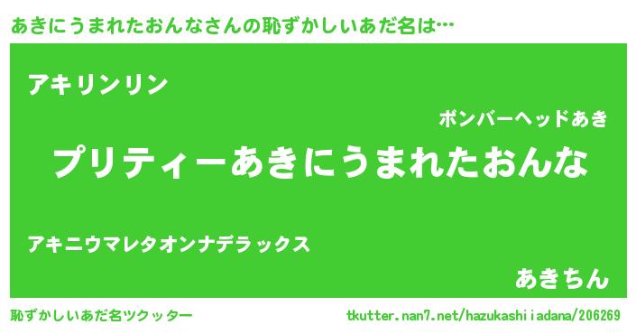 | 意味不明あだ名 | 『しいたけ科あきにうまれたおんな属』 |